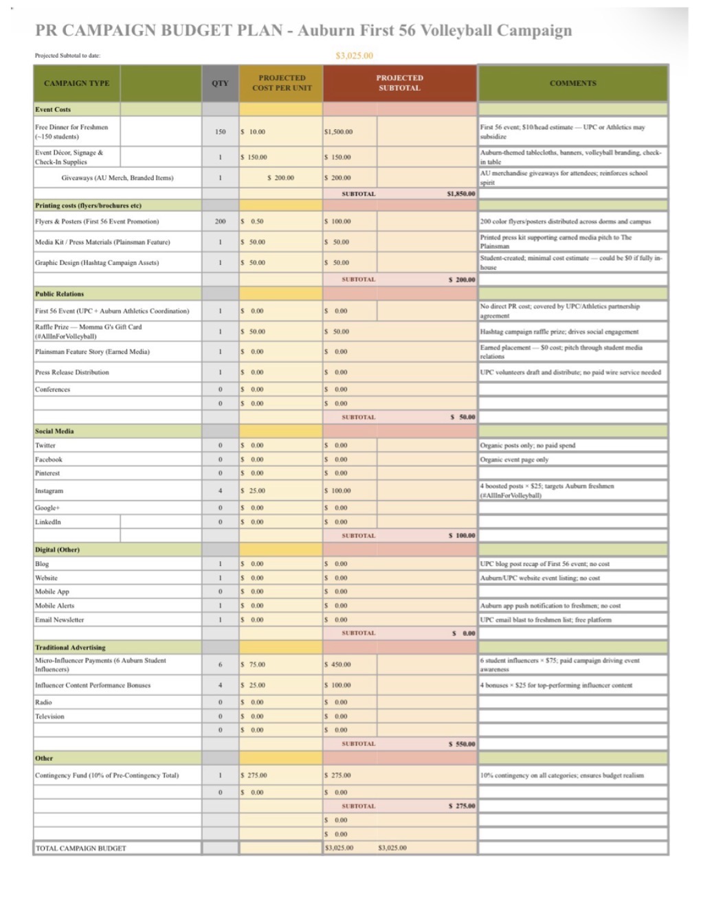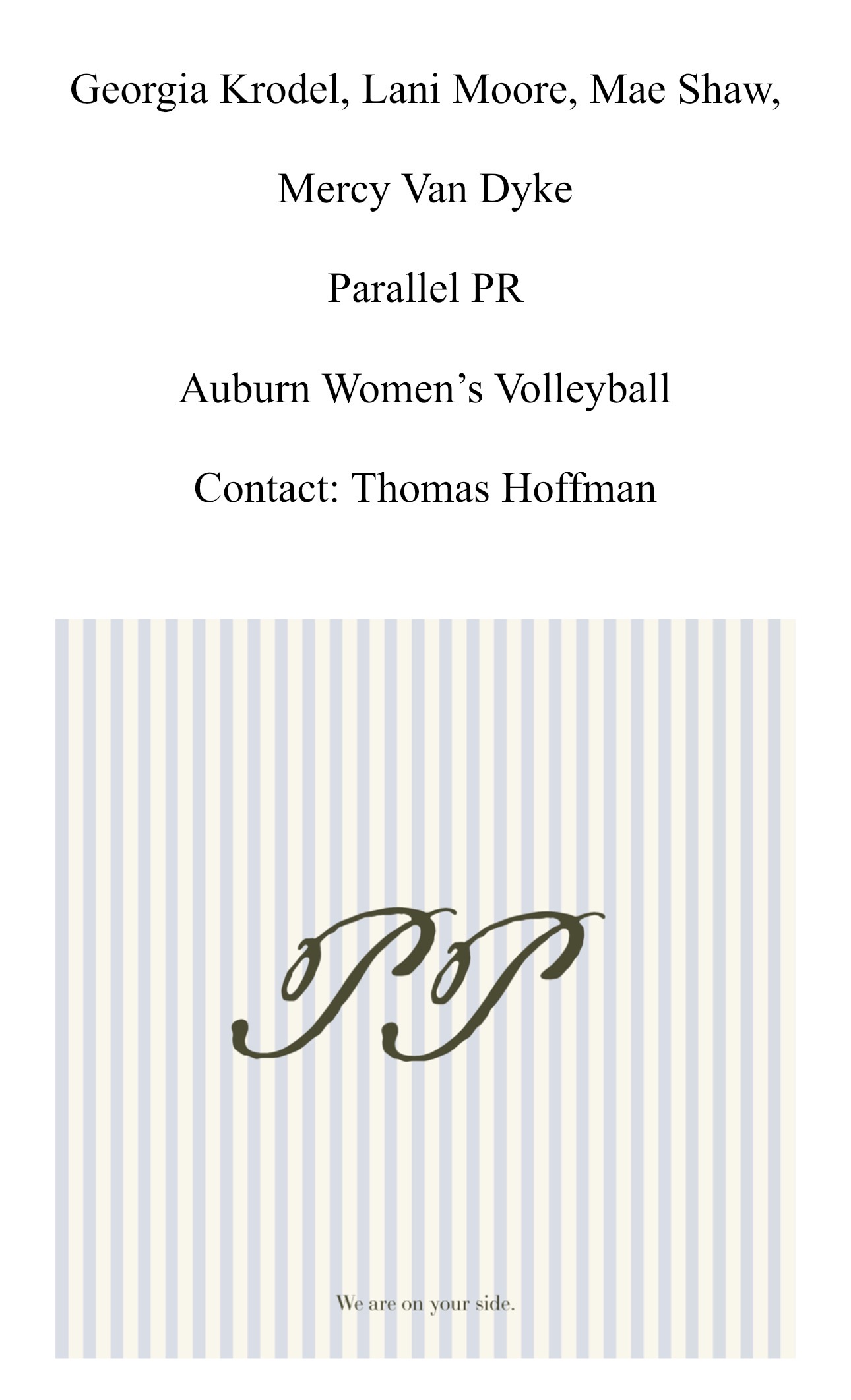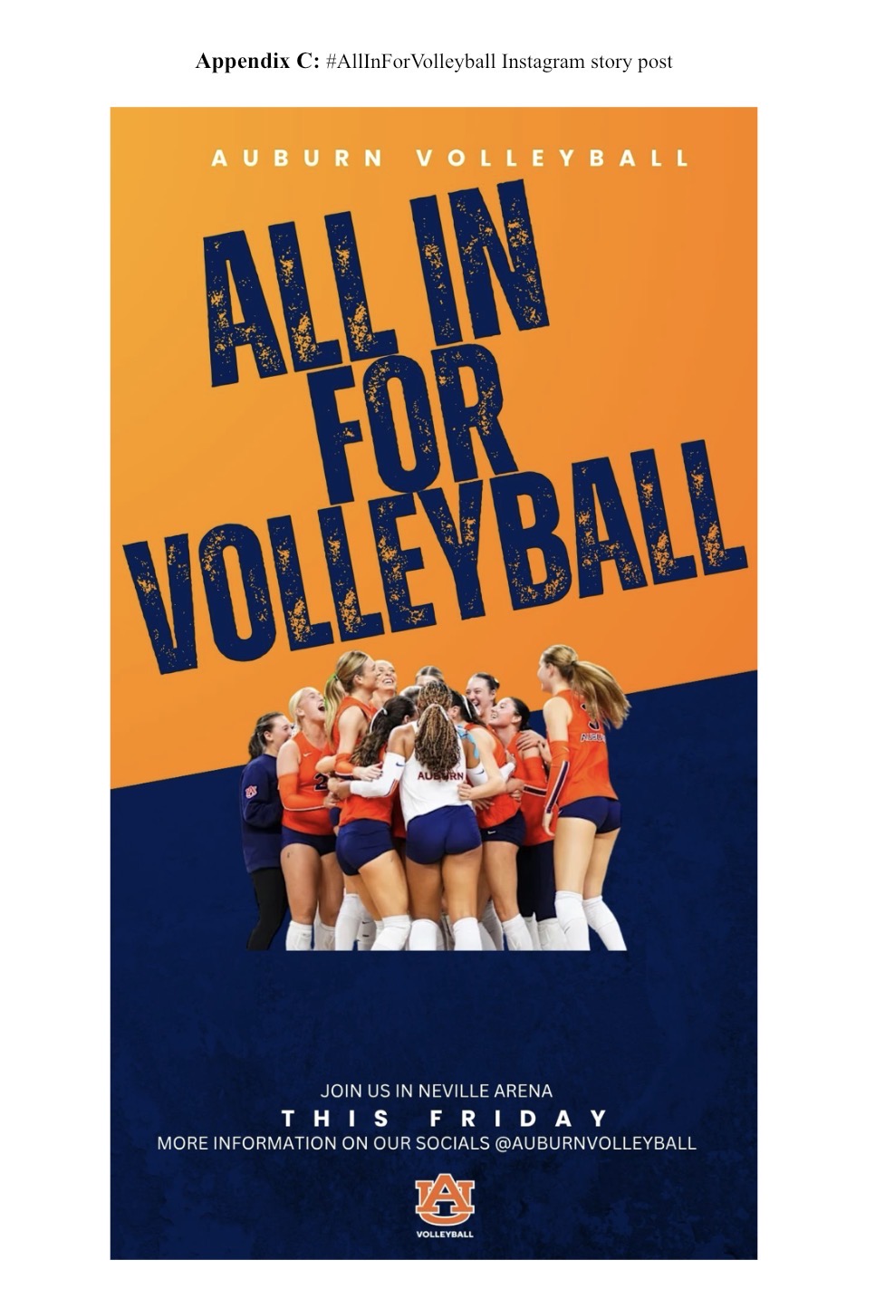 This campaign was created by a group of five Public Relations students at Auburn University as a class project. The project requires us to create a campaign from the ground up and give PR students practical experience working alongside a client, identifying and responding to communication needs, and developing the skills required to plan and implement a successful public relations campaign. For this project, our team has partnered with Auburn Women’s Volleyball to identify opportunities to increase visibility, engagement, and support for the program. Through research and collaboration, we have developed strategic recommendations and campaign initiatives designed to elevate awareness and strengthen the team’s connection with the Auburn community.